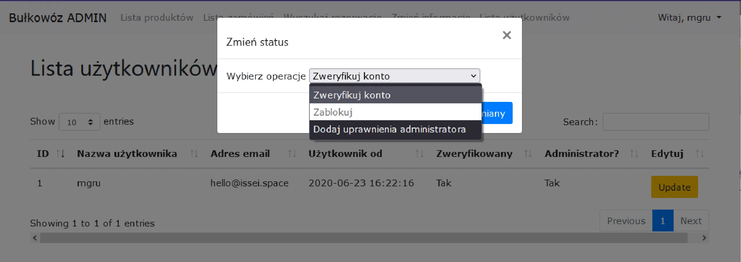 - Możliwość zmiany podstawowych informacji z panelu administratora