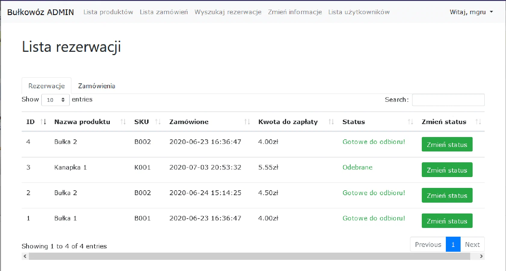 - Możliwość wygenerowania kodu odbioru zamówień (oraz kodu QR)