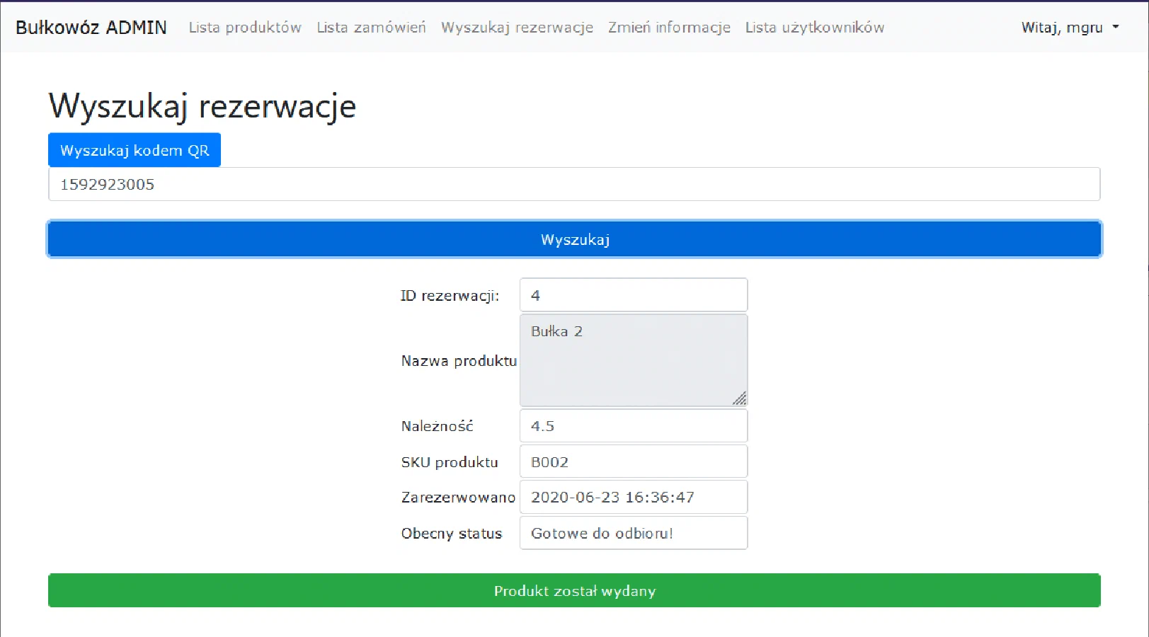 - Możliwość wygenerowania kodu odbioru zamówień (oraz kodu QR)